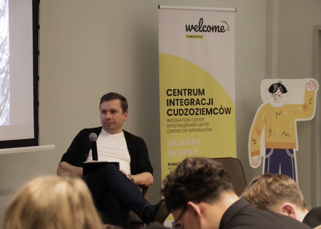 W ramach spotkania swój miniwykład wygłosił dr Rafał Raczyński (Uniwersytet Gdański) i przeprowadził rozmowę ekspercką z Maciejem Moskwą – fotografem dokumentalistą i reporterem. Podczas wydarzenia mieliśmy okazję przedstawić nasz projekt Pomorskie Welcome Center oraz związane z nim doświadczenia, wyzwania, możliwości i narzędzia współpracy. W ostatniej części dr Kamila Kowalska (UG) rozmawiała z Taisiią Huz i Yaną Strakazą, które opowiedziały o swoich doświadczeniach migracji.