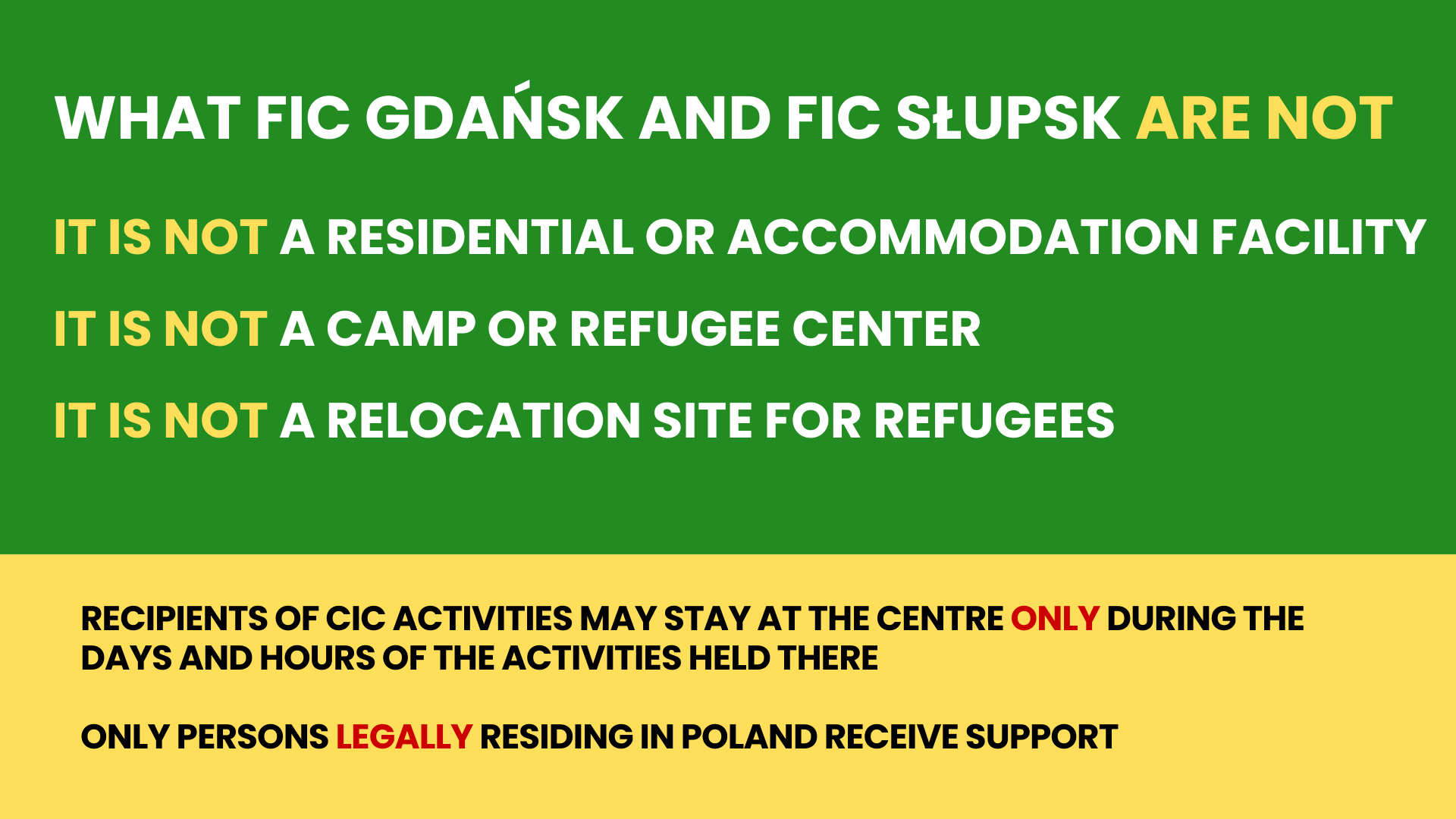 • Information and advisory points in Gdańsk and Słupsk at the Pomeranian Voivodeship Office – Residency Legalisation Department, offering help with residence legalisation procedures and broader integration support.